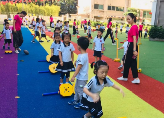 当面对的是三四岁的小朋友时,老师的上课内容主要是以一些攀爬类,转弯跑步(蛇形跑),折返跑,跨栏等一些项目为上课的主要内容,当面对六岁左右的小朋友时,则是以一些团体活动或者躲避盘,跳绳,蹦床等一些游戏为主。