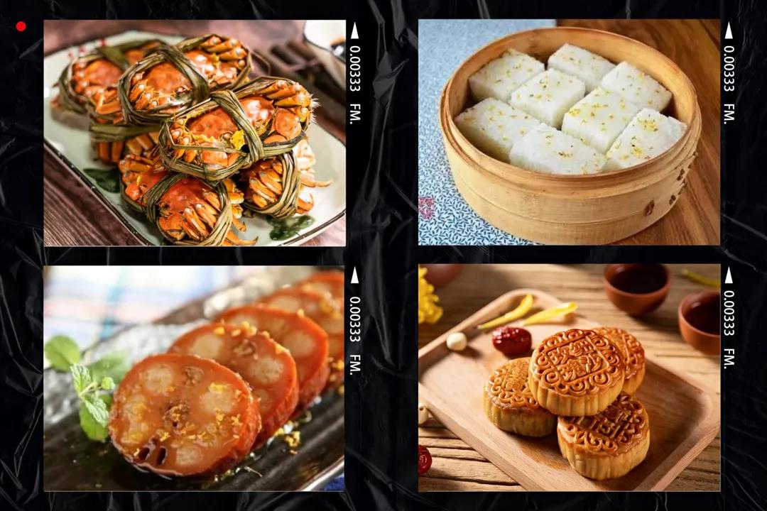 大闸蟹、桂花糕、桂花糯米藕、月饼……