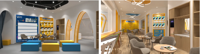 场馆空间从整体、局部及细节上进行多层次的设计,通过以“人”为设计原点,整体布局贯穿统一设计元素,将品牌符合、版权图形、商标、完美融合,不仅提升了单店坪效,还形成全域的空间氛围营造。